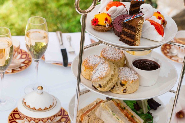 Typically, you’ll get finger sandwiches, warm scones with clotted cream and jam, cakes, pastries, and a pot of tea.